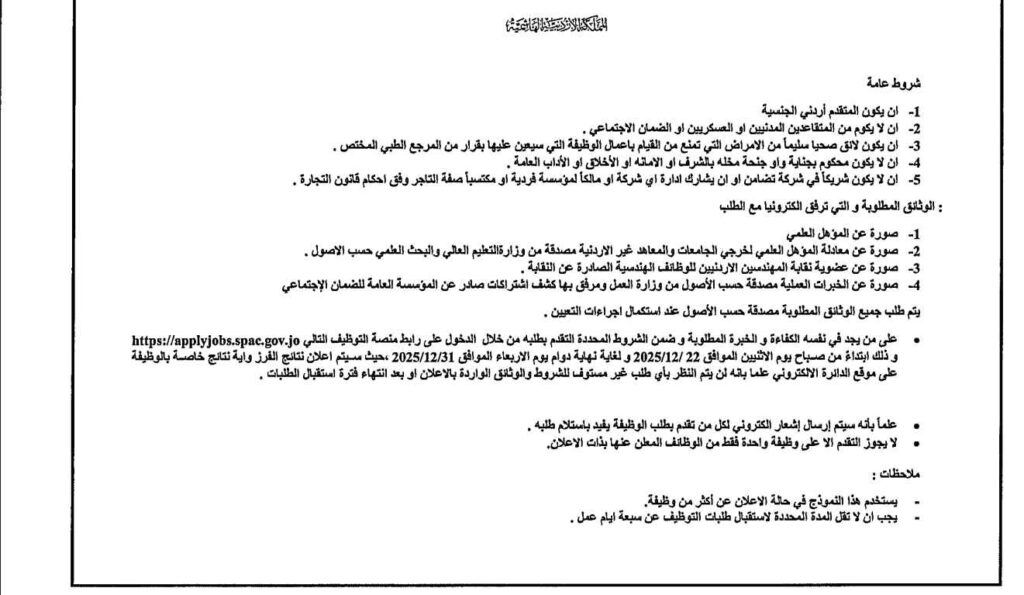 - آخر موعد للتقديم: نهاية دوام يوم الأربعاء 31/12/2025